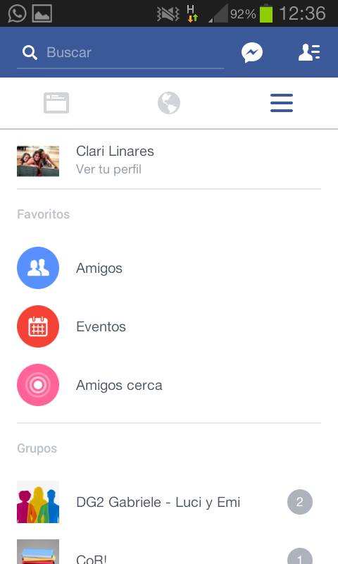 Ofrece al usuario la interacción con otras personas ya sean conocidos como no, permite compartir desde archivos hasta fotografías, jugar juegos online y crear grupos privados, públicos y secretos. Pantallas: 1. Primero debo ingresar mi nombre de usuario o crearme uno. 2. Una vez adentro, puedo acceder al Inicio en donde veo en un orden no cronológico las actividades que realizaron mis amigos a través de facebook, ya sea poner me gusta en una imagen como compartir alguna información. 3. Puedo buscar gente a través de la barra de búsqueda. 4. Puedo acceder a mi perfil donde estarán todos mis datos, mis imagenes, mis amigos, y las cosas que yo comparto con la gente. 5. Puedo iniciar un chat con una persona o con varias. 6. Puedo acceder a grupos creados en donde pueden ser privados, secretos o públicos.