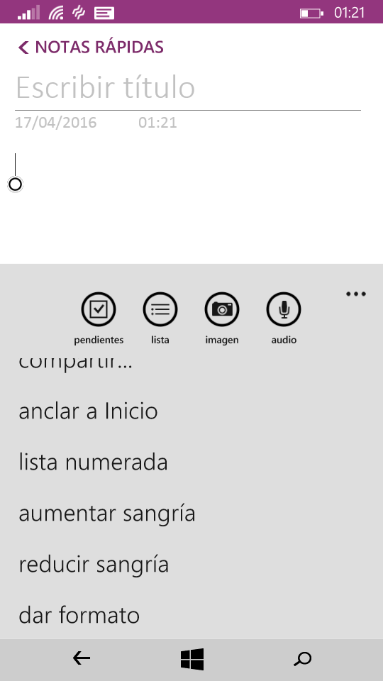 OneNote para Windows Phone: La aplicación no necesita del registro o de una cuenta mas allá de la propia del teléfono, para acceder a su función. Posibilidad de escribir notas y comentarios a los que solo puede acceder y editar quien posea el teléfono móvil.