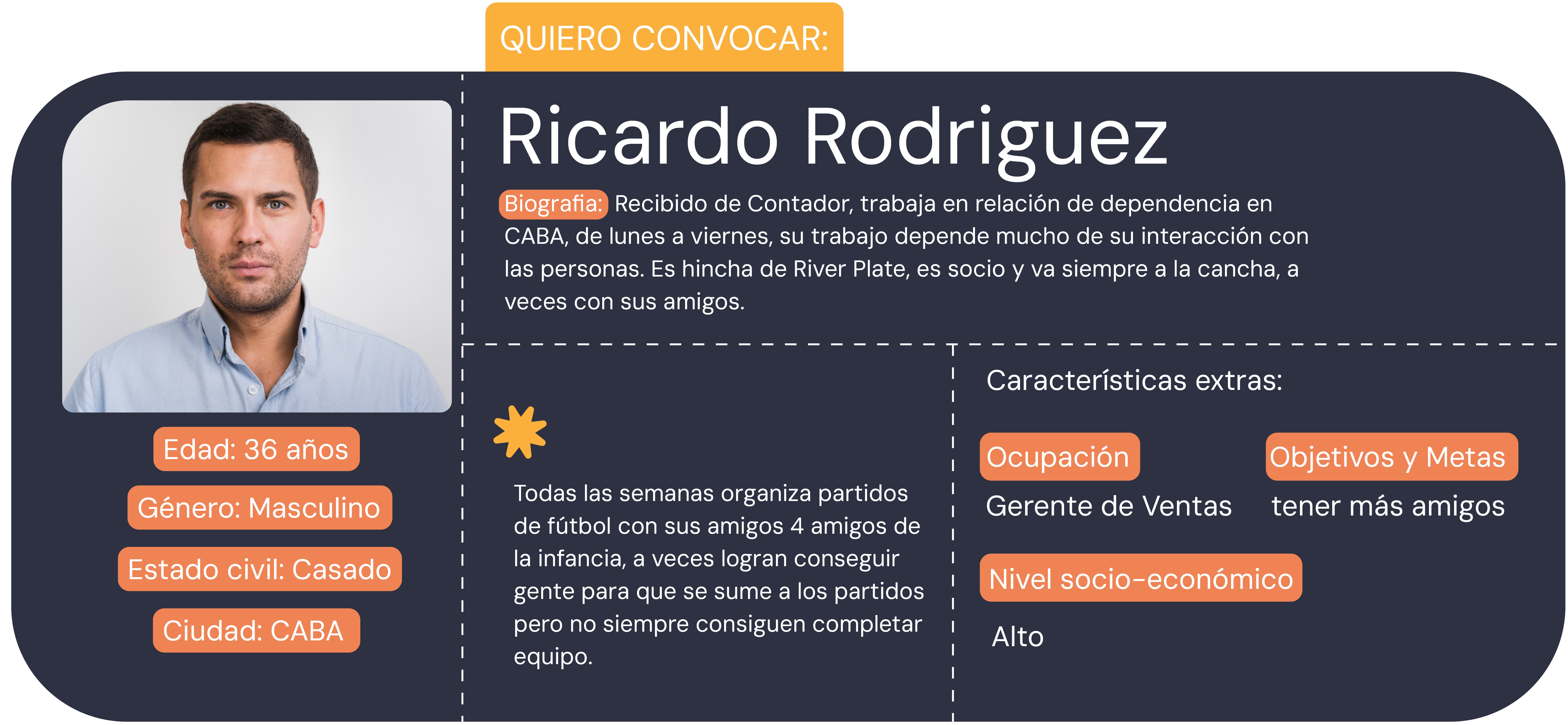 Somos un grupo conformado por diseñadores de las areas graficas y audiovisuales de la UBA/FADU quienes en comun en base al TP propuesto de la catedra Ocampo de la materia de Diseño por computación planteamos resolver de una forma rapida y digital sumarse a un partido de futbol o invitar a alguien cuando falten jugadores para completar el equipo
