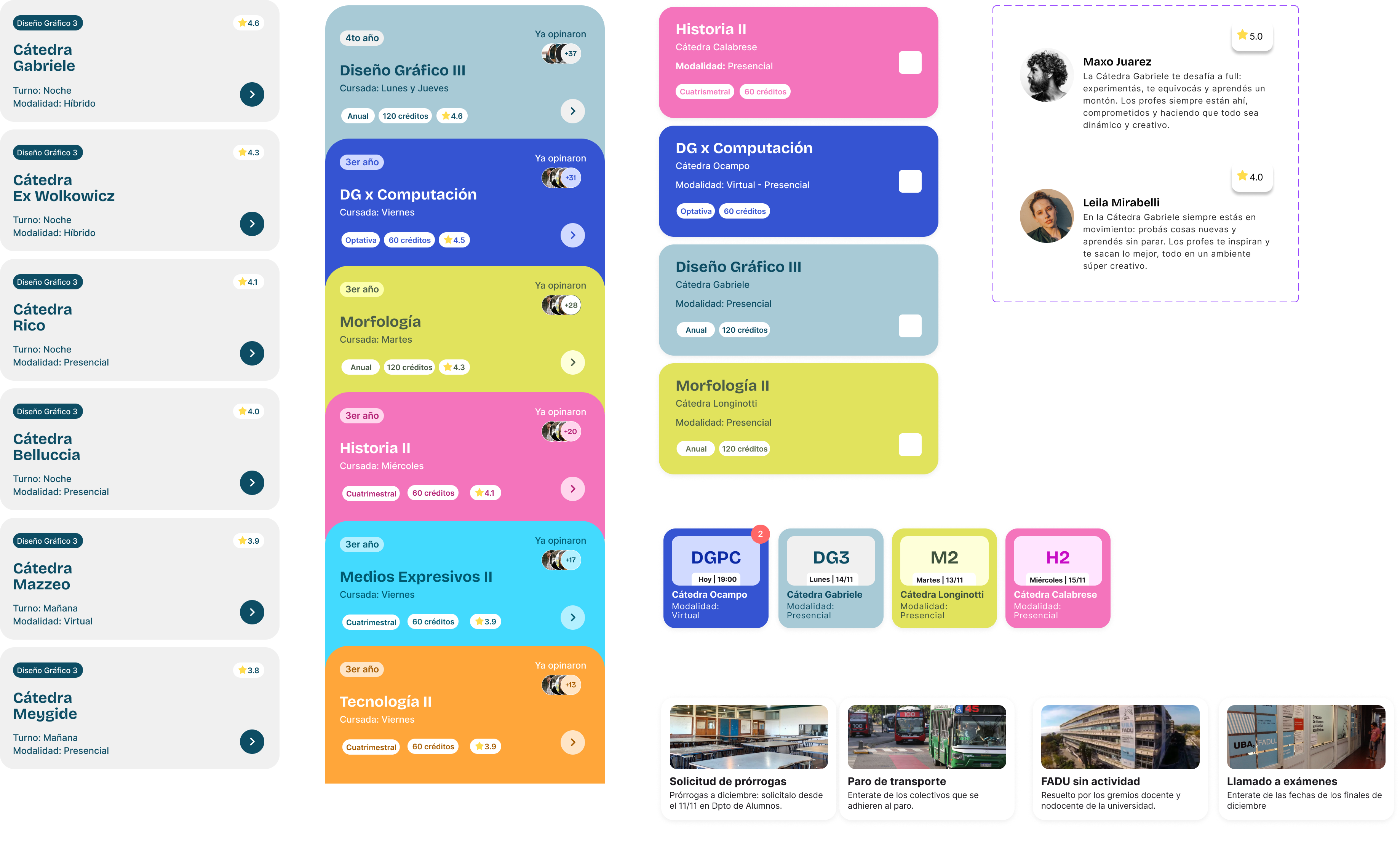 Crear una plataforma que centralice la información académica para los estudiantes de la FADU. La app permitirá consultar horarios, ver el historial de materias, obtener detalles sobre cátedras y compartir opiniones, mejorando la experiencia y colaboración académica.