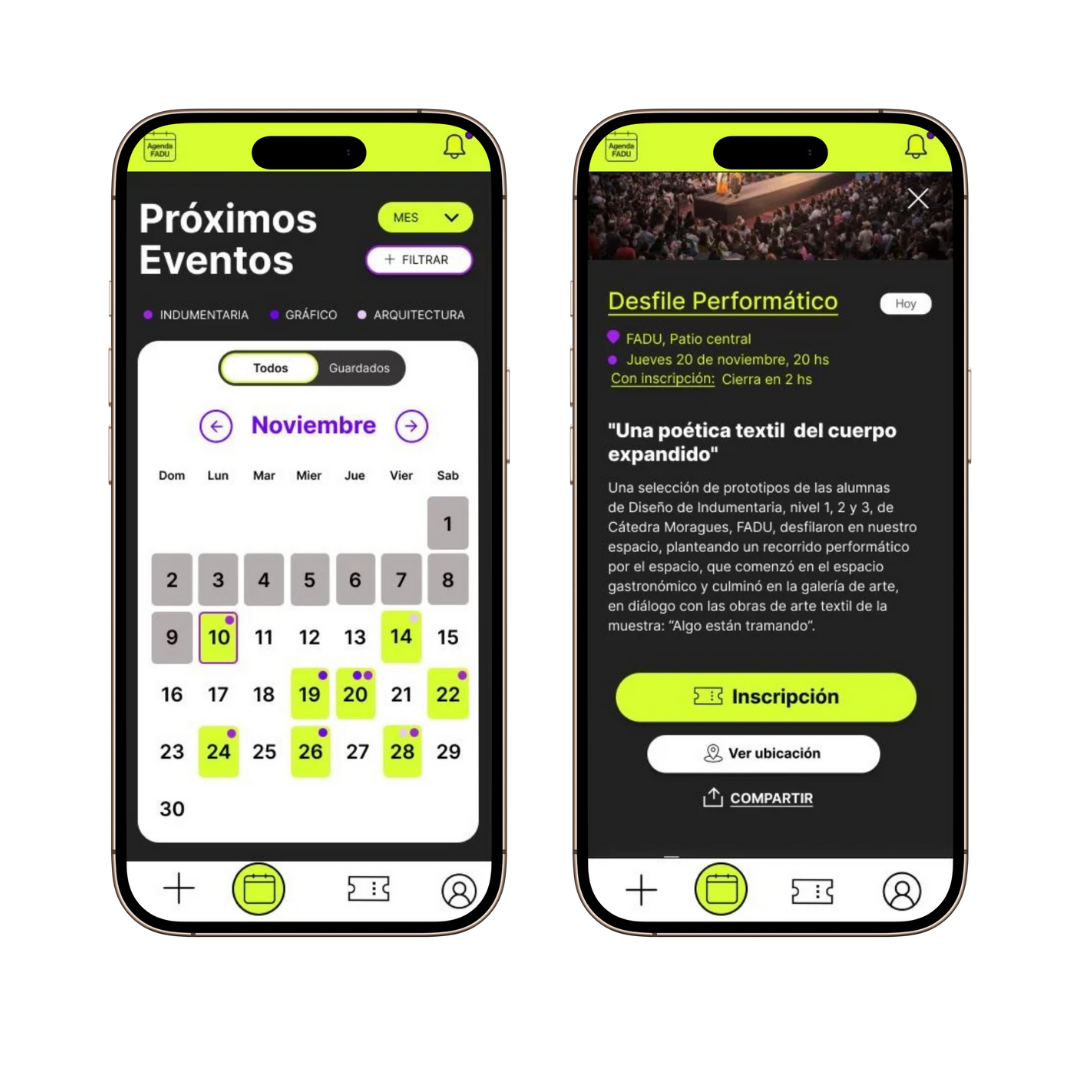 La app AgendaFADU busca crear un espacio que organice, sugiera y promueva eventos según los intereses de cada estudiante, para evitar la dispersión en múltiples canales y promover la participación.